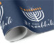 Papier Cadeau Hanoukka heureuse avec Menorah blanche en bleu mod