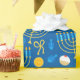Un Beau Papier Motif Enveloppant De Ménorah Bougies et Douceurs Pour Hanoukka.