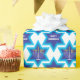 Grand motif pour envelopper vos cadeaux Hanoukka. Etoile blanche de David sur arrière - plan bleu ciel.
