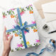 Papier Cadeau Hibiscus fleur tropicale couronne rose blanc vert