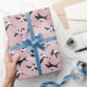 Papier Cadeau hirondelles dans le ciel -rose - Grande échelle