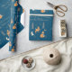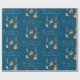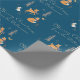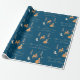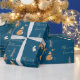 Papier Cadeau Hiver Bois Animaux Folk Art Bleu Noël