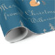 Ce papier d'emballage personnalisé présente un thème de bois d'hiver illustré avec un motif d'art populaire scandinave sur un arrière - plan bleu foncé. Divers animaux de bois mignons sont assis au milieu des arbres dans une forêt d'hiver. Un joyeux message de Noël et un exemple de nom de famille sont imprimés au-dessus des animaux. Vous pouvez personnaliser le papier d'emballage pour inclure votre propre nom ou texte personnalisé.