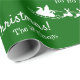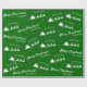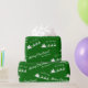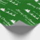 Ajoutez une touche de saison amusante à vos cadeaux de vacances avec ce papier d'emballage vert et blanc personnalisé. Le papier d'emballage présente l'arrière - plan vert avec un accueil de Noël Joyeux blanc et le texte Ho Ho Ho, votre nom de famille, et le Père Noël volant dans son traîneau avec des rennes. Ce papier d'emballage fait un grand ajout personnalisé à votre cadeau de Noël!