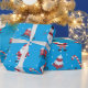 Get your gifts ready for the season with this cheerful, classic Christmas Wrapping Paper! The bright blue design features a repeating pattern of all the favorite holiday characters: jolly Santa Claus, cheerful snowmen, happy reindeer, candy canes, and festive trees. This fun and traditional paper is perfect for wrapping gifts for the family and kids, ensuring your presents look festive and full of holiday spirit under the tree! It's an easy way to bring a traditional, merry look to all your holiday packaging.