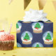 A classic holiday pattern featuring snow globes with a wintery Christmas tree scene inside on a dark blue background. Perfect to add a cute festive touch to your gifts this Christmas!