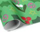 A scattering of holly and mistletoe with some stars and spirals fill this holiday wrapping paper with botanical joy.