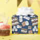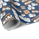 Un joyeux enveloppement cadeau S'mores sur le thème d'un arrière - plan bleu. Rempli de guimauves et de craquelins. Un motif amusant sur le thème du camping.