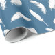 Papier Cadeau Impression en plumes blanches sur bleu denim