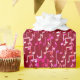 Une cascade de notes musicales rose fushia, rose pâle, beige et crème sur un arrière - plan de vin bordeaux profond
