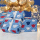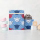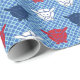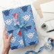 Papier Cadeau imprimé lapin japonais, bleu avec rouge et blanc