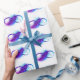 Infinity symbole with a beautiful feather painted in purple and blue bright colors on white background