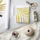 Belle feuille de palmier en feuille d'or sur fond blanc uni et initiale monogrammée qui peut être modifiée et personnalisée à votre goût.