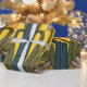Papier Cadeau Iris Fleur Art Nouveau Vitrail Bleu Or