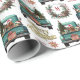 Un pick-up bleu turquoise transporte un arbre de Noël décoré et des paquets cadeaux sur ce joli papier d'emballage cadeau. Un superbe Setter Dog rouge irlandais donne sur la porte arrière. Un panneau en bois rustique sur le pare-chocs arrière dit "Cheer de Noël". Votre monogramme est entouré d'un joli cône de pin et d'une couronne de baies rouges, et le texte en or stylisé dit "Joyeux Noël". Vous pouvez également customiser "de la section (Nom).