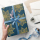 Papier Cadeau Jaune sur le bleu prussien Fleurs Sketchy