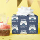 Conçu pour correspondre à nos invitations à la fête d'anniversaire Level Up et à nos accessoires, cet ensemble de papier d'emballage sur le thème des joueurs rétro dispose d'un motif de contrôleurs de jeu sur un arrière - plan bleu marine avec "[Nom] a atteint le niveau [âge]" en lettres de style numérique vintage.