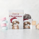 Joli chiot de Noël avec casquette rouge Père Noël sur arrière - plan pétillant