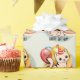 Joli papier d'emballage d'anniversaire, avec un design coloré avec un chaton avec un cupcake et des ballons festifs. Beau pour les amoureux de les chats.
