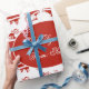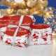 Joli Père Noël Motif Rouge et Blanc Motif avec Faux Ribbon Élégant Papier cadeau de Noël pour enfants de tous âges, avec étiquette cadeau personnalisée, Ajouter au et de Nom ou Texte ou supprimer le texte