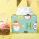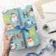 Joli Père Noël Snowman Ho Ho Typographie Noël Motif de vacances Enveloppement papier présente un motif mignon et lunatique avec le texte "Ho Ho Ho" dans la typographie de script moderne coloré accentué avec un Père Noël, bonhomme, rennes, ours polaire et flocons de neige. Parfait pour l'emballage cadeau de vacances. Créé par Evco Studio www.zazzle.com/store/evcostudio