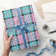 Papier Cadeau Joli Tartan Écossais Plaid Turquoise Rose