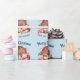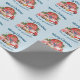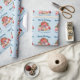 Ce papier d'emballage de Noël personnalisé présente un dessin d'aquarelle mignon d'une ferme. Des petits animaux de ferme pour bébés sont habillés de chapeaux de Santa à l'extérieur d'une ferme de campagne. L'arrière - plan est de couleur bleu clair.