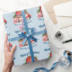 Papier Cadeau Jolie ferme de Noël Animaux sur bleu clair