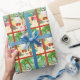 Ce papier d'emballage de Noël présente des oiseaux tropicaux mignons et colorés portant des chapeaux de Père Noël. Ils se promènent sur la plage pour rencontrer Père Noël sous un palmier décoré de décorations et de lumières.