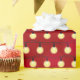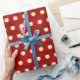 Ce joli papier d'emballage pour Noël présente un arrière - plan rouge joyeux avec des lumières de Noël jaune vif dans un motif horizontal. Parfait emballage cadeau pour la famille et les amis.