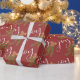 Ce papier d'emballage de Noël présente le mot "joie" dans un texte de style calligraphie blanche tendance sur l'arrière - plan rouge foncé. Le design est accentué par l'aquarelle peinte de verts de Noël avec un arc.