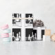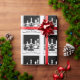Cette conception personnalisée de papier d'emballage d'anniversaire d'échecs comporte des pièces d'échecs classiques en noir et blanc sur un échiquier. La scène est sur une photo rétro avec un accueil de Joyeux Anniversaire!.