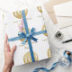 Joyeux 100e anniversaire Parties scintillant d'or et papier d'enveloppement blanc avec nom personnalisé.Pour plus de personnalisation, cliquez sur le bouton "Customiser" et utilisez notre outil de conception pour modifier ce modèle.