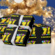 Papier d'emballage coloré de 7ème anniversaire avec nom personnalisé.