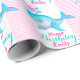 Papier mignon d'emballage cadeau d'anniversaire, comportant l'eau de giclement de coeur de baleine mignonne. Dans le rose, bleu turquoise d'aqua et et papier d'emballage d'anniversaire fait sur commande pourpre. Personnalisez avec votre nom et salutation. Lit actuellement le joyeux anniversaire Emily. Une grande manière de customiser votre cadeau d'anniversaire. Uniquement conçu par Sarah Trett.