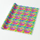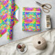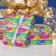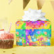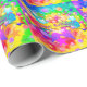 Bright and beautiful, psychedelic Happy Birthday papier d'emballage cadeau d'anniversaire conçu par HAMbyWhiteGlove. Chaque couleur de l'arc-en-ciel semble représentée ici avec le rouge, le vert pourpre, le bleu, l'orange, l'aqua, le jaune et plus ! 203-302-0337