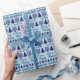 Personnalisez celui-ci d'un papier d'emballage Chrismukkah en ajoutant le nom de votre enfant au sapin bleu marine de Noël et au motif Hanoukka Menorah et créez quelque chose de vraiment spécial pour sous l'arbre. Conçu pour les familles inter-religieuses qui fêtent les fêtes chrétiennes et juives, ce joli papier d'emballage avec un texte bleu foncé avec votre choix de noms sur un arrière - plan de bleu pastel pâle est prêt à ravir. Adorable aussi bien pour les enfants que pour les adultes et si facile à personnaliser, ce enveloppement personnalisé avec des arbres bleu marine et des menorahs est un complément amusant à vos célébrations de Noël et d'Hanoukka combinées. Joyeux Chrismukkah !