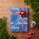Joyeux Hanoukka bleu et blanc Juif Holiday élégant script cadeau motif Wrapping Papier. Motif de texte de script blanc sur couleur arrière - plan bleu.