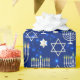 Ce design de vacances Hanoukka présente un arrière - plan bleu scintillant avec menorah et étoile de David superposé. #hanoukka #chanukah #vacances #saisonnière #fête #moderne #bleu #menorah #starofdavid #bijoux #élégance #chic #motif #coutume #giftwrapper #papier à merveille #giftwrapping #fournitures de fête