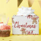 Pain d'épices sur bois de bouleau blanc avec Joyeux texte de Noël en couleur rouge. Le texte, la police et la couleur peuvent être modifiés ou supprimés.