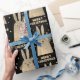 Papier Cadeau Joyeux lapin de Noël Sepia Gold Metallic Black