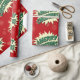 Joyeux dessin de Noël avec l'arbre de Noël et la décoration des flocons de neige sur l'arrière - plan rouge