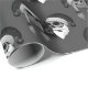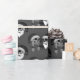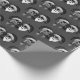 Tête de mort Madame Mann Noël Rose Bonnet Bart, papier cadeau. Femme et Père Noël. Le design de la tête de mort, la femme a des tresses blondes avec des boucles, et l'homme a une barbe blanche et une rose rouge entre les dents. Ils ont tous les deux une casquette avec une cloche. Papier cadeau en noir et blanc, adapté au motif.