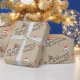 Papier d'emballage de vacances avec des oiseaux, des étoiles rouges, et un faux-pied sur un arrière - plan brun