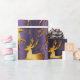 Papier Cadeau Joyeux Noël aux rennes pourpres et dorés