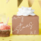 Papier d'emballage simple de base. Un pastel bohème moderne brun avec Joyeux Noël en police manuscrite imprimée dans un motif extensible. Papier Brown Bohème Joyeux Enveloppement de Noël.