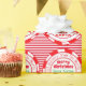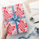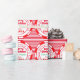 Ce papier d'emballage festif sur le thème de Noël présente un cadre extérieur avec un motif de bonbons à menthe rouge et blanche tourbillonné. L'expression "Livraison spéciale du pôle Nord" est imprimée dans un motif circulaire autour de la zone de texte. Le message de bienvenue "Joyeux Noël" est imprimé en haut dans une police rouge fantaisiste. Un exemple de nom est imprimé en vert, que vous pouvez personnaliser pour inclure votre propre nom ou destinataire personnalisé. "From Père Noël" est imprimé dans la partie inférieure avec les lettres du nom "Père Noël" imprimées dans une police de style Noël en rouge et surmontées de neige tombée. Plusieurs flocons de neige bleu clair sont placés autour des lettres. Des rayures rouges et blanches courent horizontalement le long de l'enveloppement cadeau.