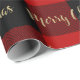 Papier Cadeau Joyeux Noël Écriture Dorée Plaid Rouge de Bison