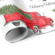 Camion antique traditionnel avec un sapin vert sapin de Noël dans le lit. "Joyeuses fêtes" En écriture fantaisiste. J'adore ça. Profitez de vos vacances.