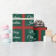 Élégant papier d'emballage Joyeux Noël avec le nom de vos destinataires cadeaux. Classic rouge et vert avec écriture de script blanc.